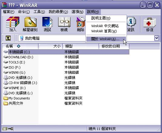 開啟 WinRAR 後,在功能表按下『說明』『關於 WinRAR』。