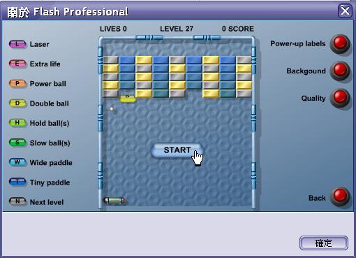 例如進入「breakthrough」遊戲後,按一下「START」就可以開始玩遊戲了。