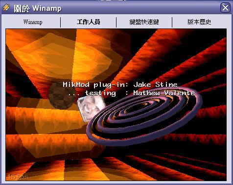開啟 Winamp 後,在功能表按下『說明』『關於』,開啟「關於 Winamp』對話盒後,切換到「工作人員」活頁標籤,就可以看道 3D 圖案動畫,在左下角會顯示每秒多少畫格。