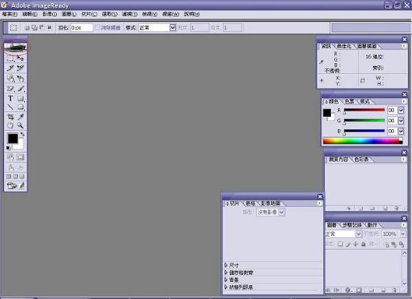 啟動 ImageReady 後,工具箱上方會出現羽毛圖案,原本在上面按一下滑鼠左鍵可以連到 Adobe 網站,但是如果你按住 Alt 鍵,然後在上面按一下滑鼠左鍵的話,羽毛的圖案就會變成一艘船了。