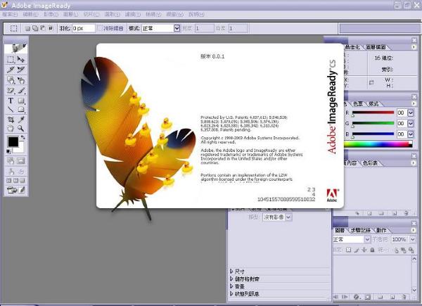 在功能表按下『說明』,再按『關於 ImageReady』會出現以下對話盒,若按住 Ctrl 鍵再按『關於 ImageReady』則會出現與上方一樣的對話盒。