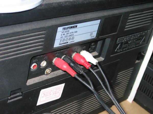 這是訊號線 AV 端子接上音響後方輸出端子的情形。