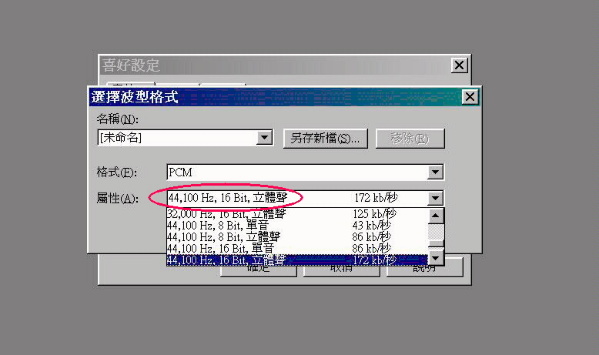 也可以選擇錄音品質、頻率或 Bit 越高音質越好,但是檔案也越大,不過時間都是一樣長。有一個觀念要知道,轉出來的效果不會比來源訊號好,頂多是一樣,所以以錄音帶的音質來說,轉出來就算你選 44000Hz 16Bit 也不會變成 CD 的音質,不過也許百萬的設備可以做到也說不定。