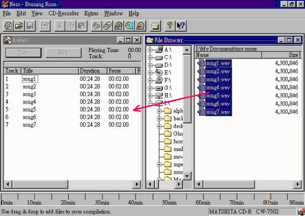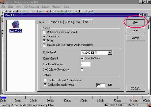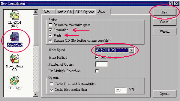 接下來就可以開始燒錄了,網路上的燒錄教學非常多,而且有燒錄機的人應該都會,所以只做簡短的說明,這裡用大家都熟悉的 Nero 燒錄軟體做例子,先選 Audio CD。