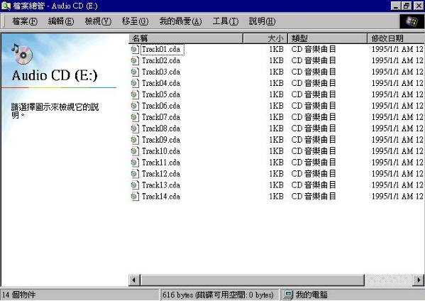 燒好之後查看光碟內容都是 .cda 的檔案,每一個都代表一個音軌,這樣用音響或電腦就都可以撥放了。